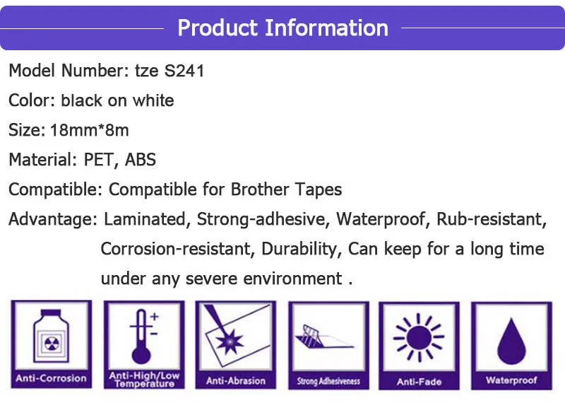 Cidy 5 шт. черная на белом сильная клейкая лента 18 мм tze S241 TZe-S241 tz S241 совместимый с принтером brother p-touch