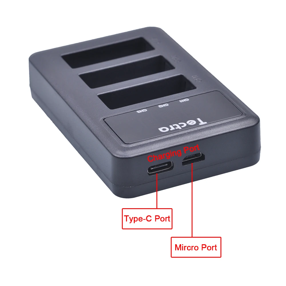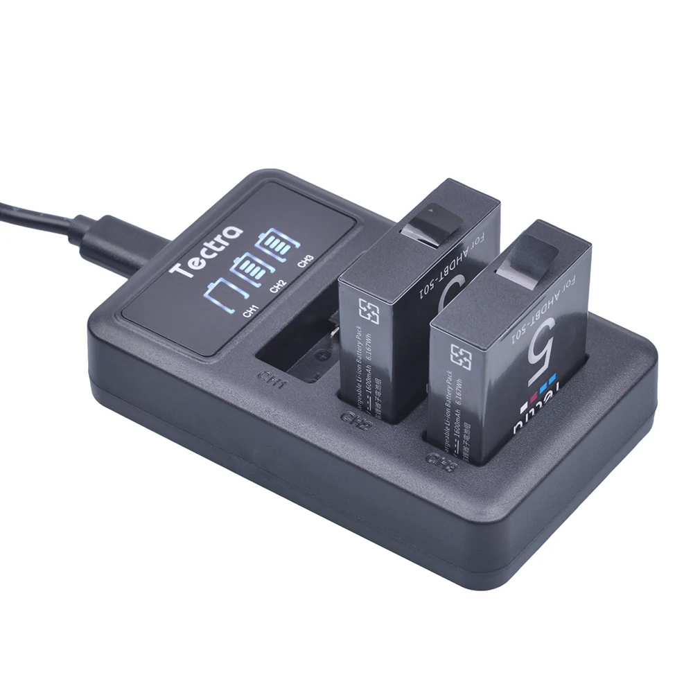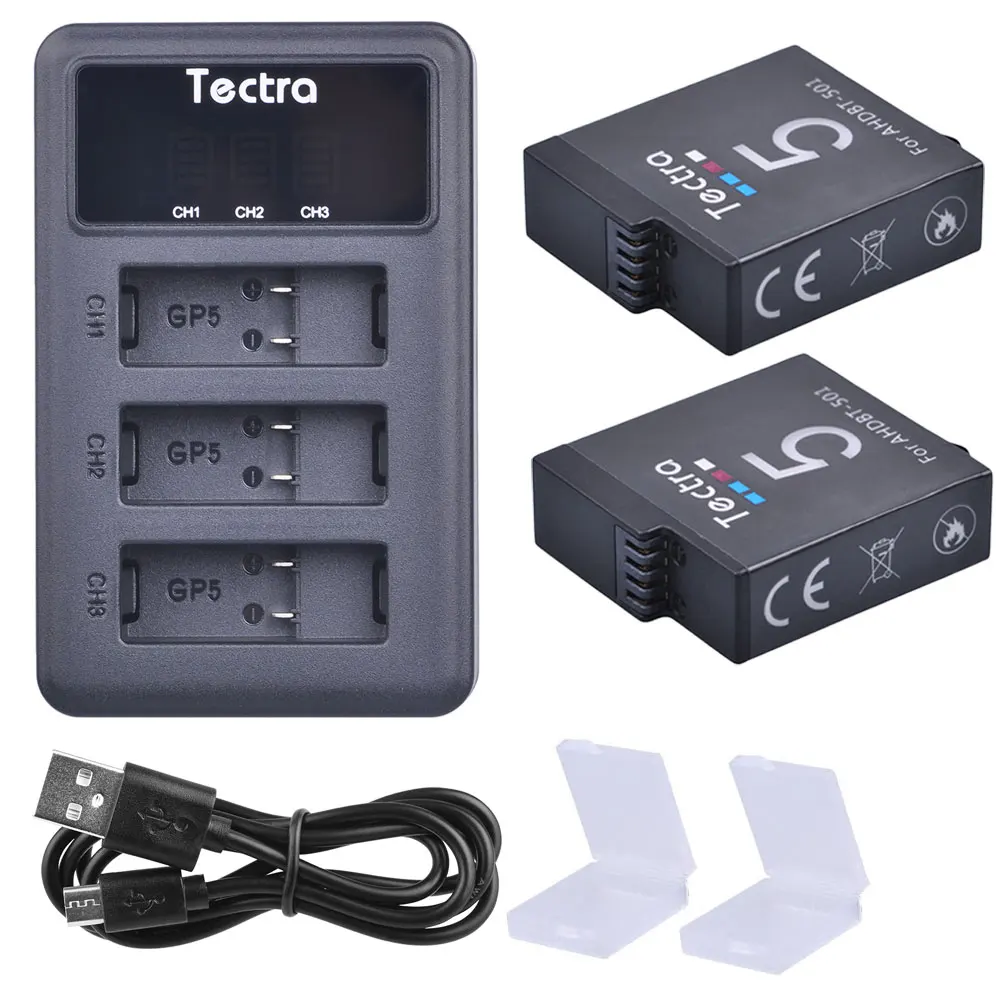 Tectra 2 шт. AHDBT-501 Go pro HERO5 литий-ионная батарея + светодиодный дисплей 3-канальный USB зарядное устройство с портом Type-C для камеры Go Pro HERO 5