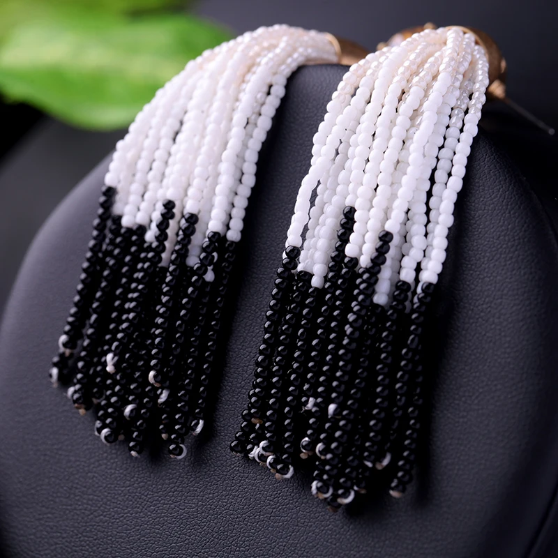 Item typeWhite & Black Seed Beads Tassel Earrings 2017