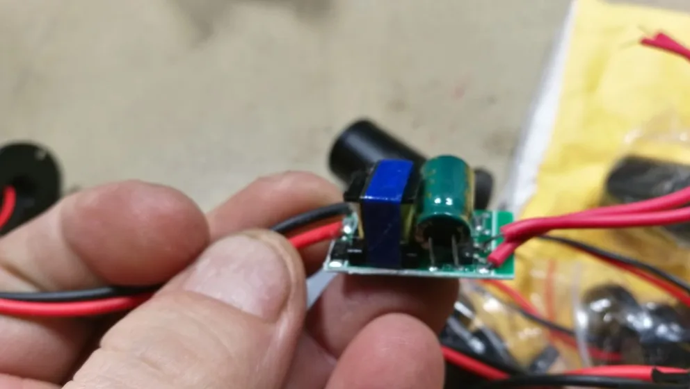 Заказ пришёл быстро. Корпус одного блока питания был поломан. Да они мне особо не нужны. Запитал последовательно от DC-DC понижающей платки от трансформатора на 33 вольта 400 мА. Выставил 15 вольт, потребление вышло 100 ма. Нагрев светодиодов слабый и DC-DC еле греется.