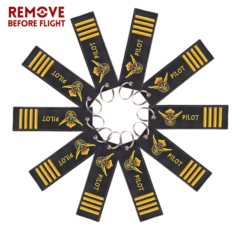 Удалить перед полетом брелок пилота epaulett вышивка брелок багажная бирка ювелирные изделия chaveiro ключ Holedr для авиационного подарка 10 шт