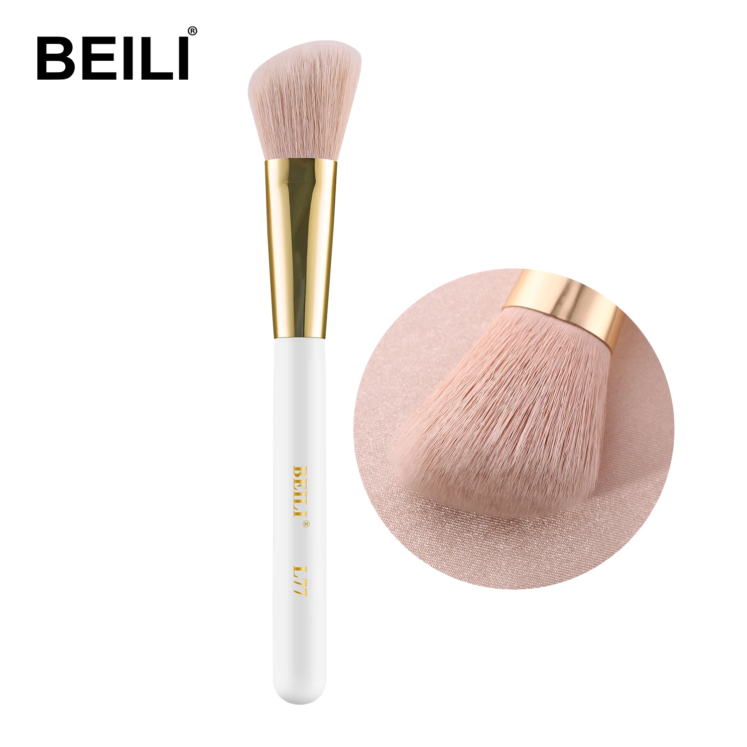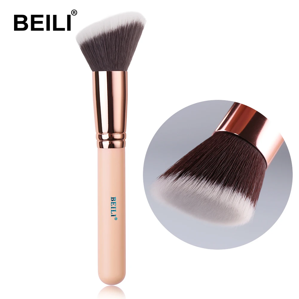 Кисти для макияжа BEILI, для пудры, румян, консилера, синтетический ворс, Профессиональная Кисть для макияжа черногорозового цвета