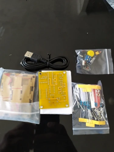 Посылка прибыла в одном пакете с другим заказом и достаточно быстро. Удобно и буквально за пару недель. Принципиальная схема в инструкции мелковата и не разборчива. Однако, думаю, сложностей со сборкой не будет: значения параметров в таблице разборчиво указаны и обозначения на плате достаточно чёткие.