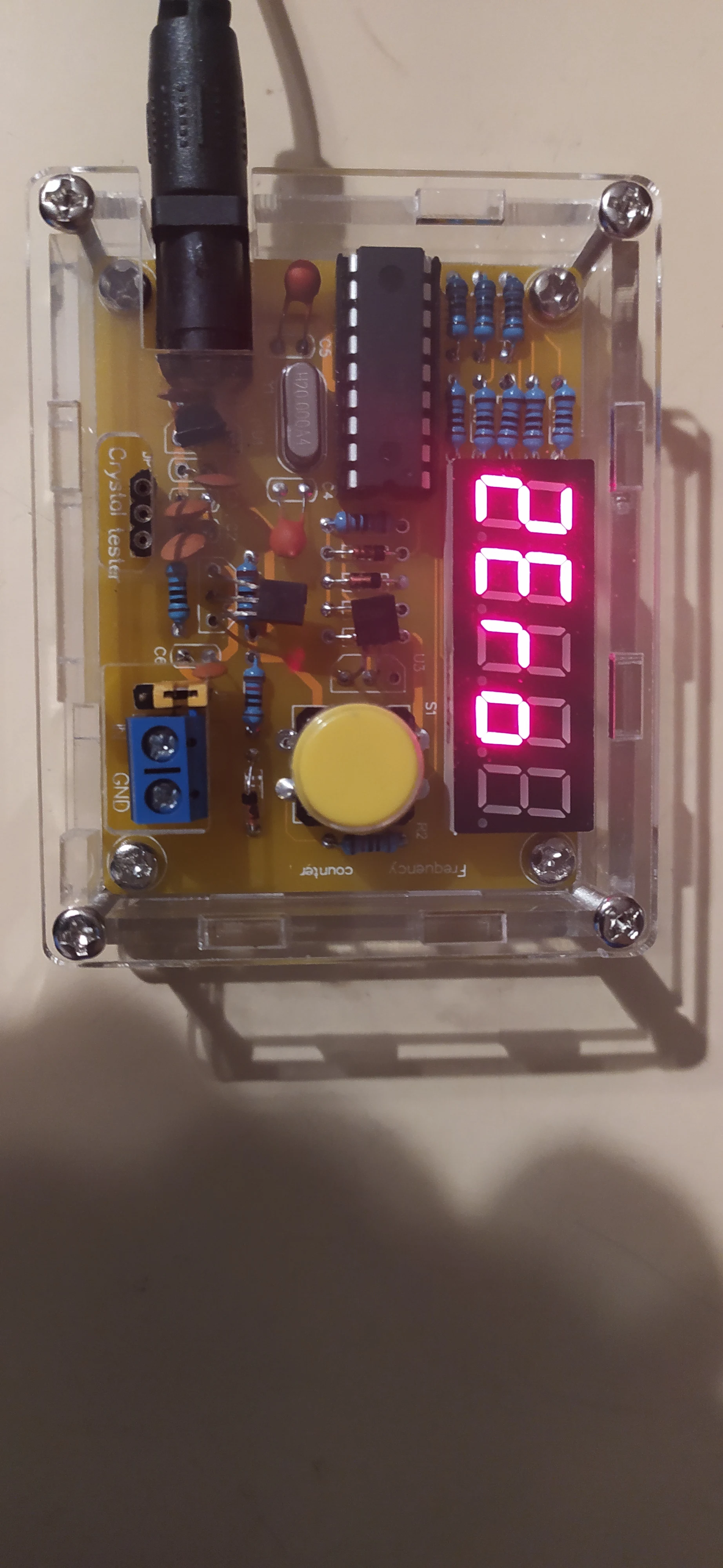 Супер! Меряет частоту кварцев! Проверял 17.734 кГц (не знаю откуда у меня такой), 32.768 кГц (определяет точно, но нужно ждать пока посчитает. Иногда быстро показывает), 4.000 МГц, 8.000 МГц, 12.000 МГц, 16.000 МГц, 20.000 МГц, 25.000 МГц - всё точно. Для этого и покупал.