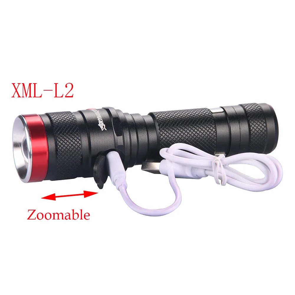Масштабируемая светодиодная вспышка L2 3500 лм, фонарик с 3 режимами, светодиодный фонарик с масштабированием 18650 + usb-кабель для зарядки