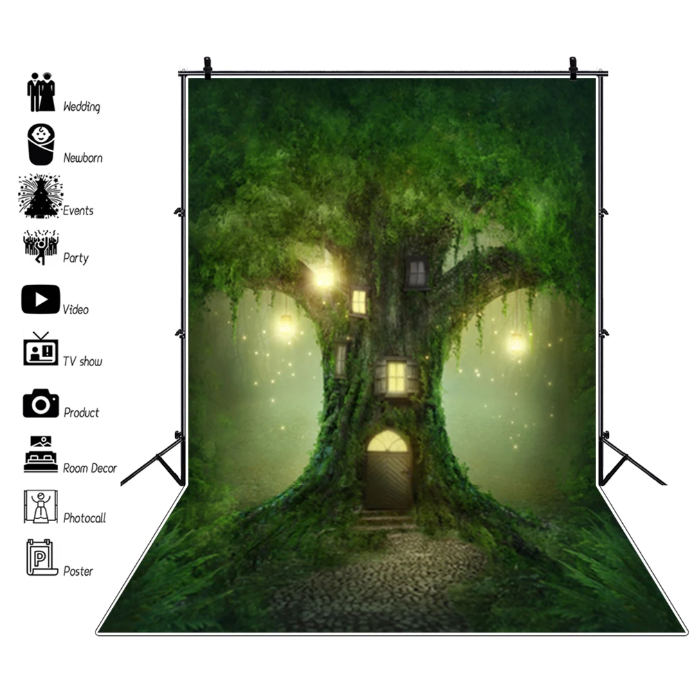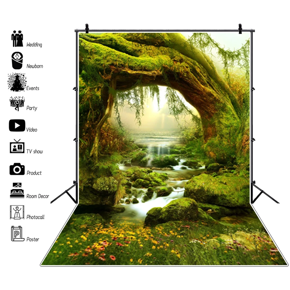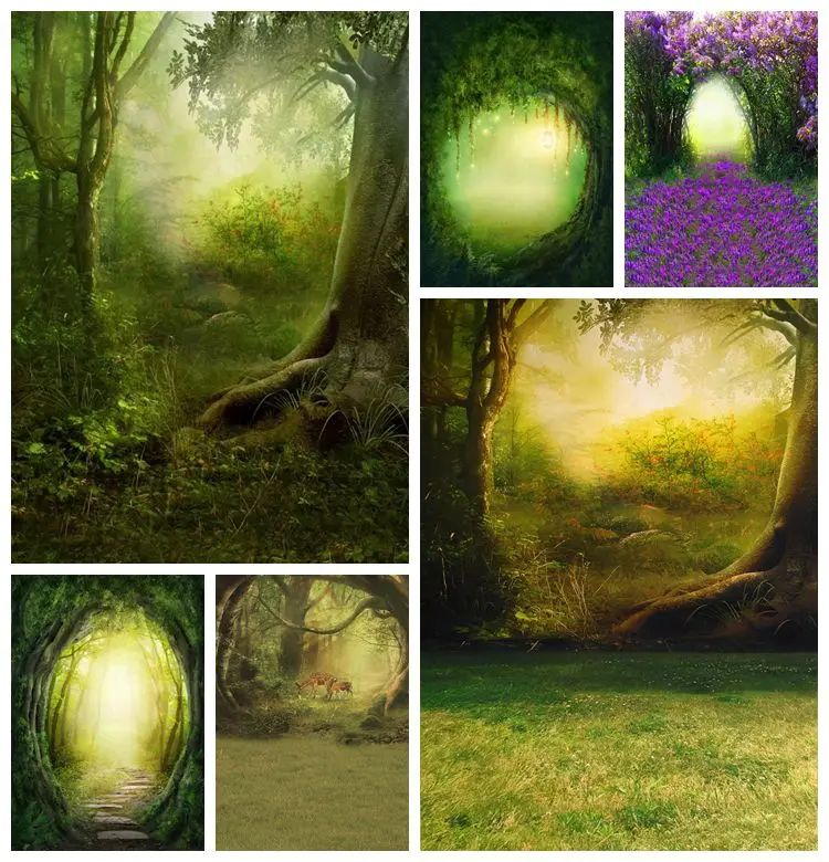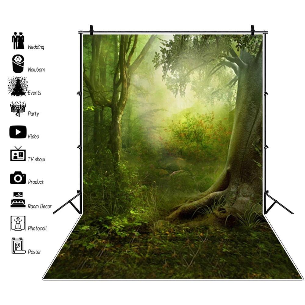 Сказочный фон для фотосъемки с изображением страны чудес леса деревьев зеленой травы фоны для детской портретной фотосъемки на день рождения
