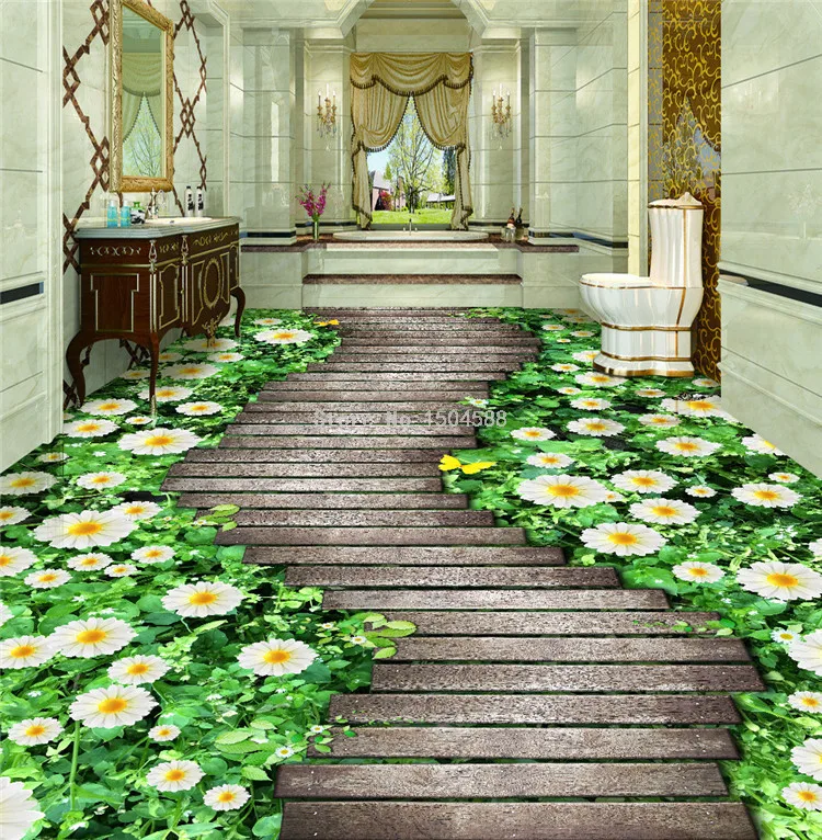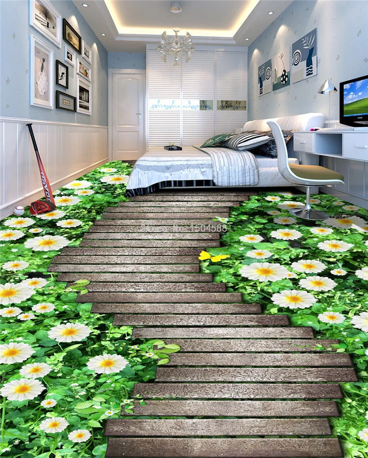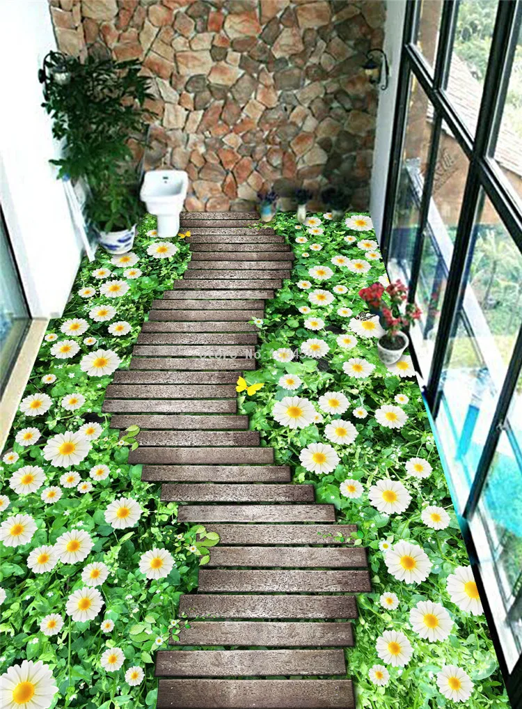 Настенная 3D обои, цветы, тропа, деревянный мост, напольная плитка, картина, наклейка, балкон, гостиная, ПВХ, водонепроницаемая настенная бумага