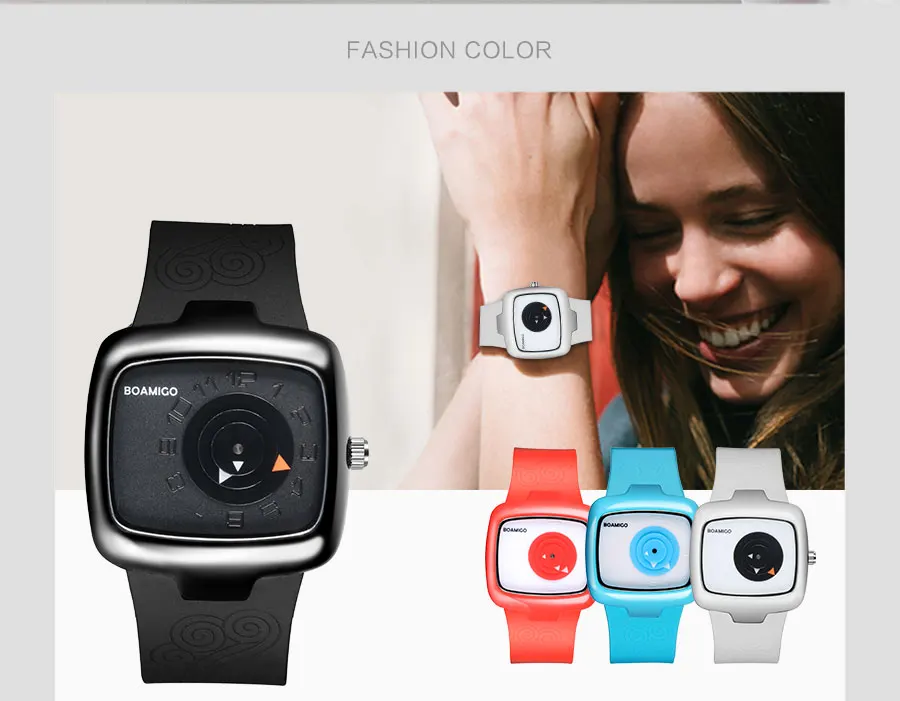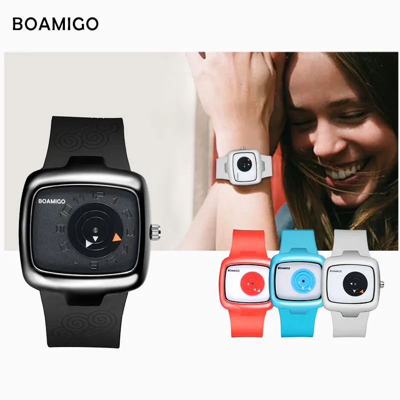 Женские часы от бренда BOAMIGO, модные женские кварцевые часы, простой дизайн, Резиновые наручные часы 2017, женские креативные часы в подарок