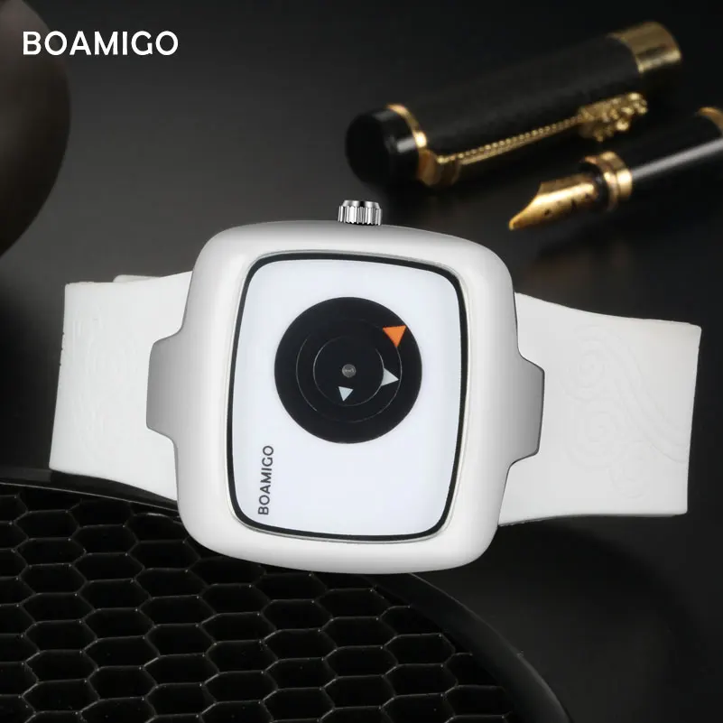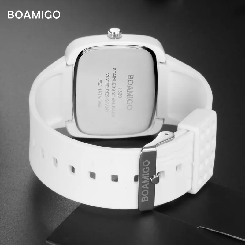 BOAMIGO Брендовые женские часы модные женские кварцевые часы Простой дизайн белые резиновые наручные часы 2018 женские креативные подарочные часы