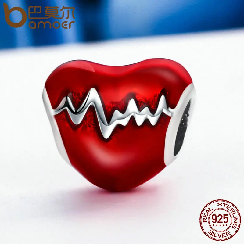 Женский браслет из серебра 100% пробы, с сердечками и ЭКГ