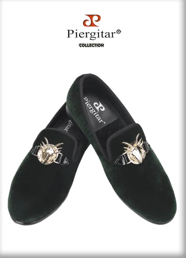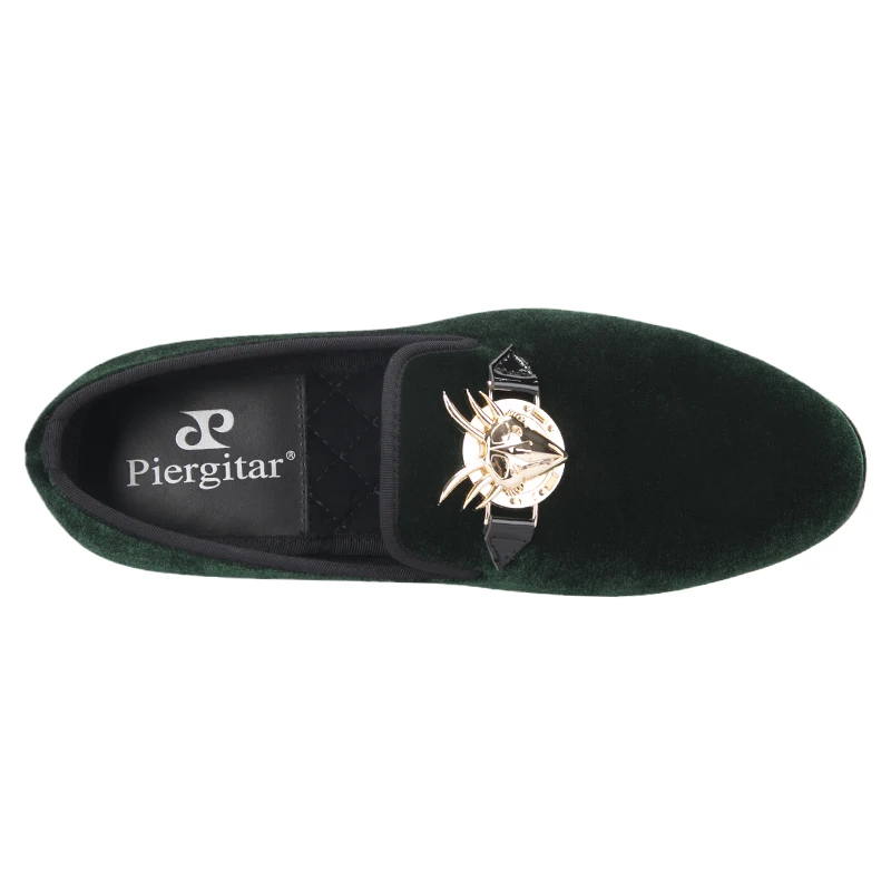 Мокасины Piergitar мужские с металлической пряжкой, Элегантные зеленые бархатные туфли, лоферы для вечеринки, свадьбы