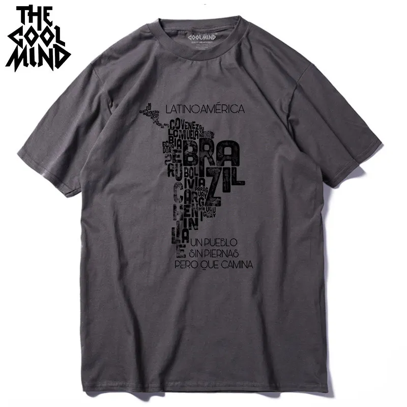 COOLMIND QI0128A хлопковая Повседневная футболка с принтом карты и коротким рукавом, модная крутая Мужская футболка в уличном стиле, крутая дышащая мужская футболка из ткани