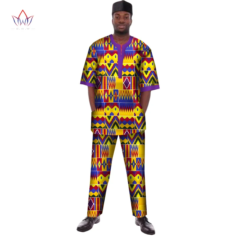 Горячая Распродажа, изготовленные на заказ с традиционным африканским принтом Дашики для мужчин на каждый день Топ и штаны, одежда размера плюс африканская одежда для мужчин комплект WYN102