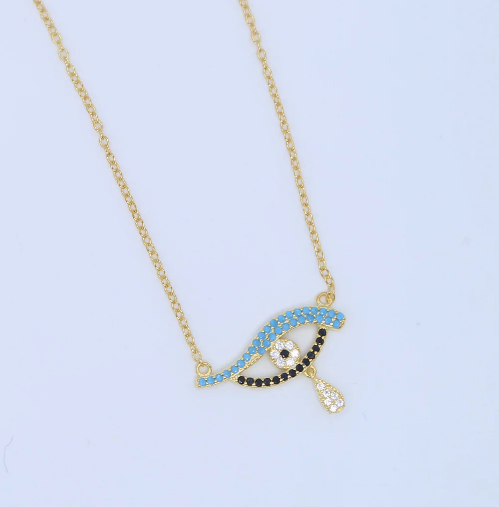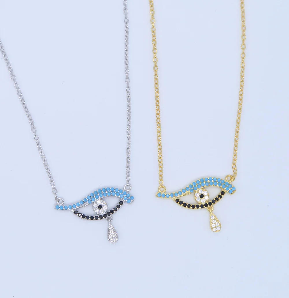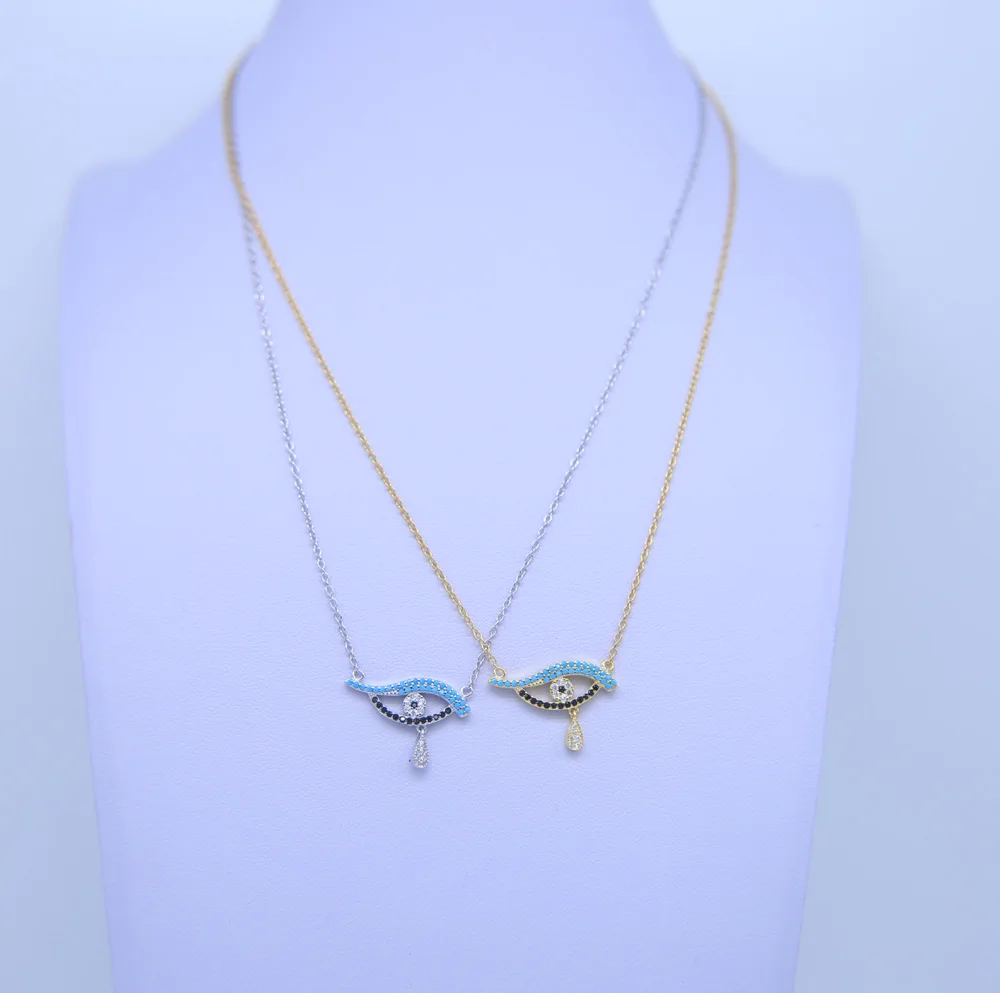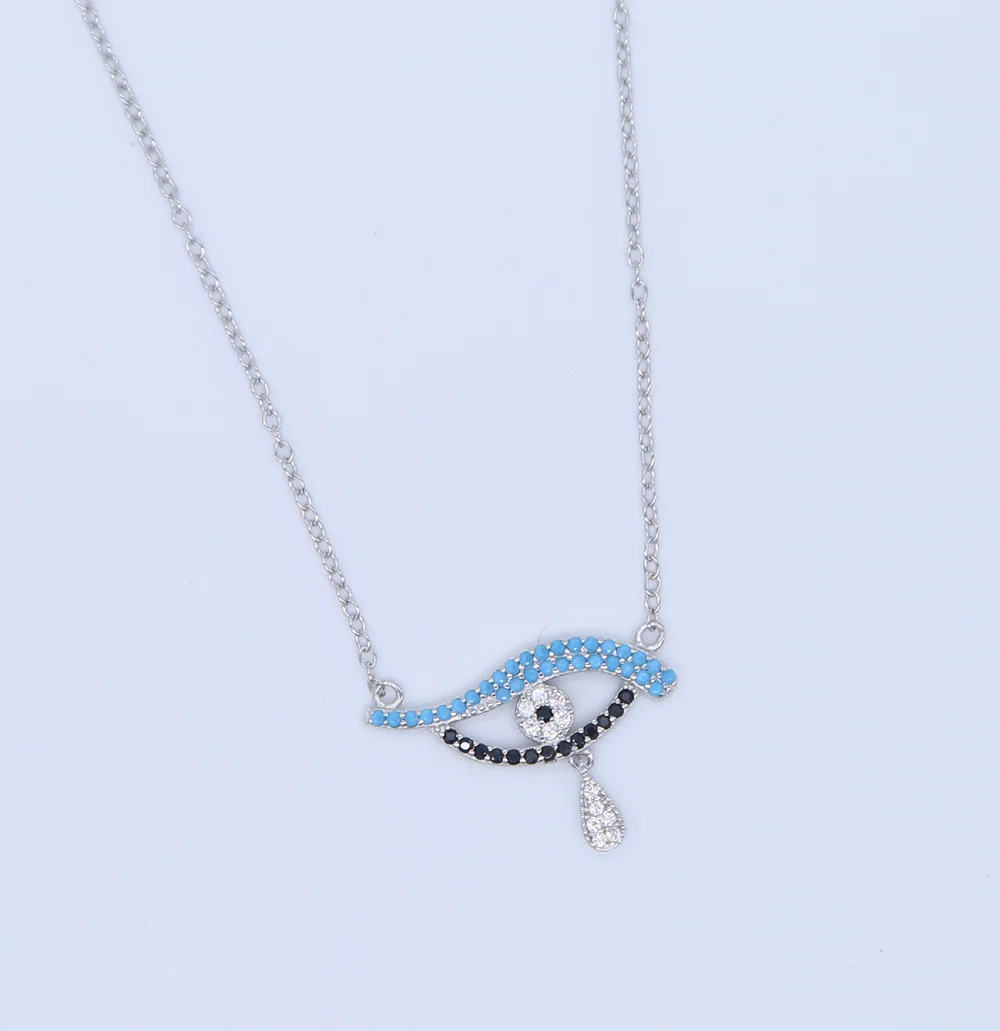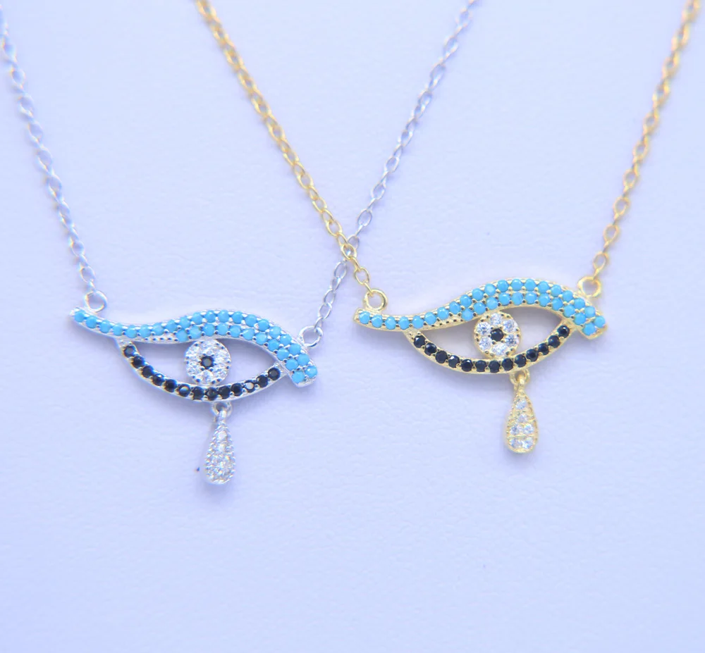 Турецкий Кристалл cz ожерелье с подвеской в виде сглаза, женское серебряное Золотое ювелирное изделие, ажурные цепочки из серебра 925 пробы