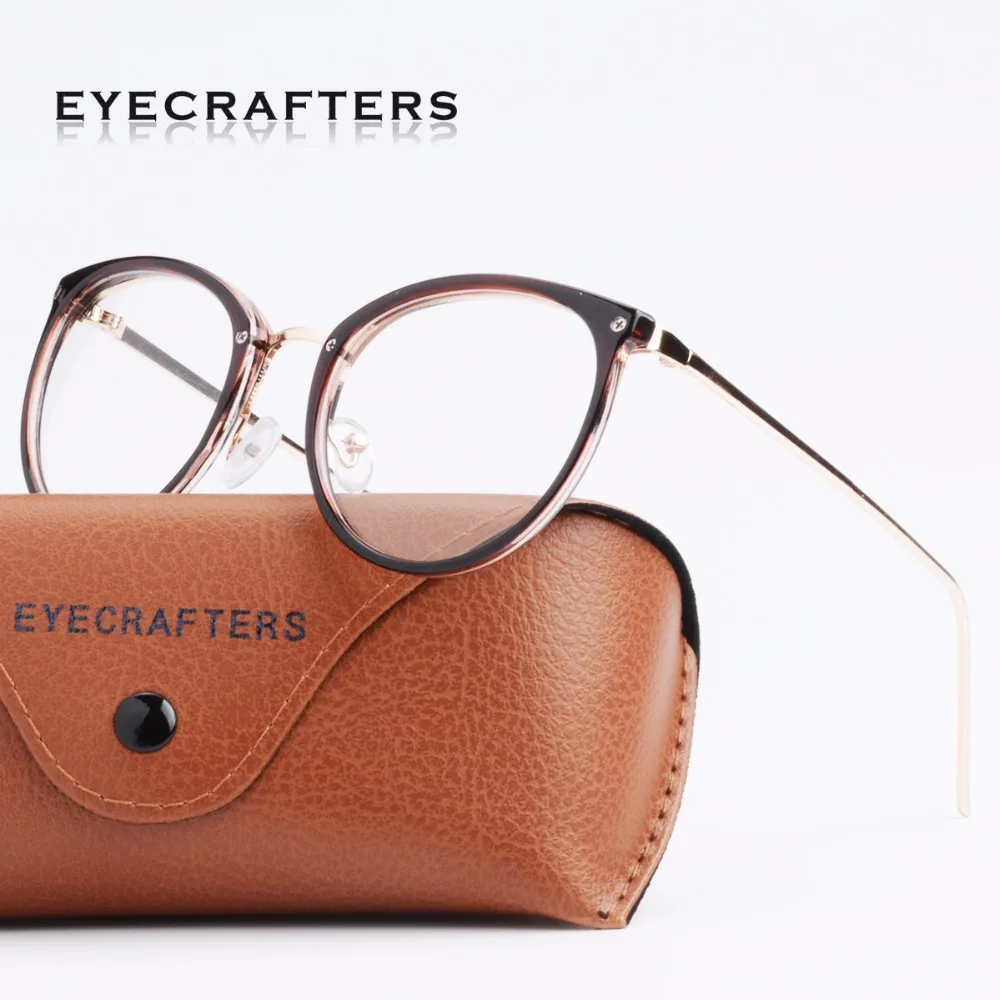 Брендовые дизайнерские оптические прозрачные линзы, винтажные оправы для очков кошачий глаз для женщин, Круглые Женские оправы для очков в стиле ретро