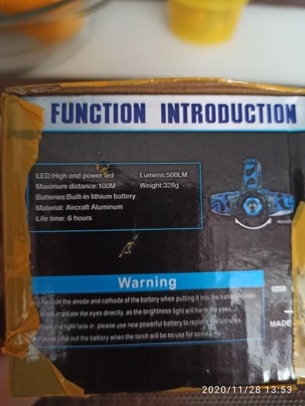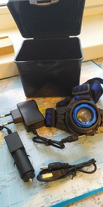 фонарь пришел быстро. сделан аккуратно, в комплекте три кабеля для зарядки-от розетки, авто, usb. Но в описании товара написан световой поток 800lm, а на самой коробке с фонарем 500lm. существенная разница. На зимнюю шапку одевается с трудом-резинки коротковаты. Светит не очень ярко, но по-моему его должно хватить дойти до места рыбалки и расставить жерлицы.