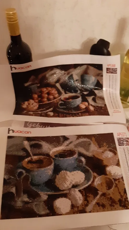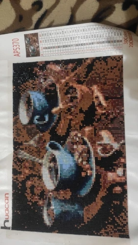 Картины пришли в течение двух недель. За это продавцу спасибо. Все картины целые , хотя коробка была помята очень , наверное их спасло то, что они намотаны были на валики. Вот пропечатка символов очень тусклая, будет сложно выкладывать (тяжело глазам) . Уже начала выкладку. Размеры на 1 см меньше указанных.
