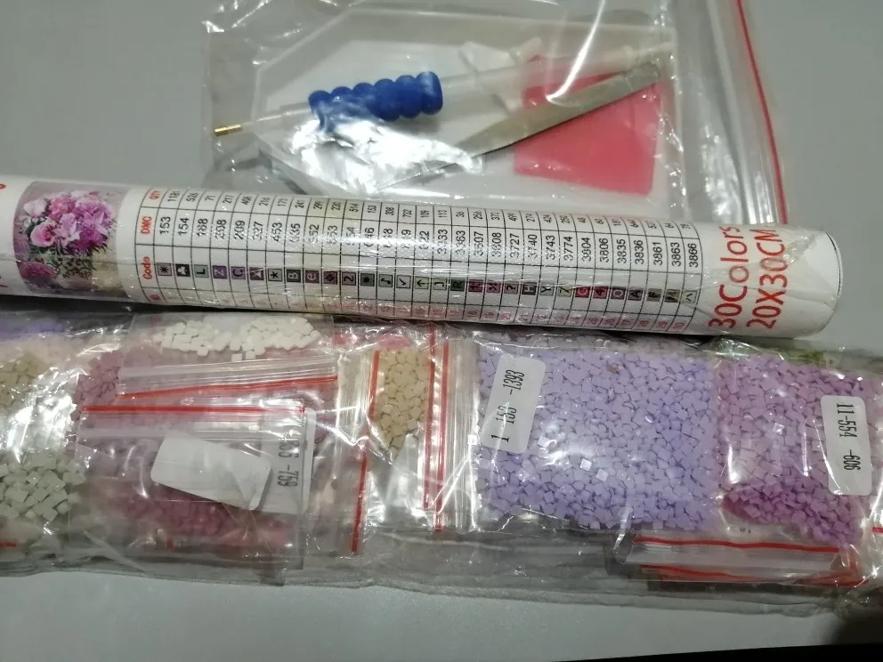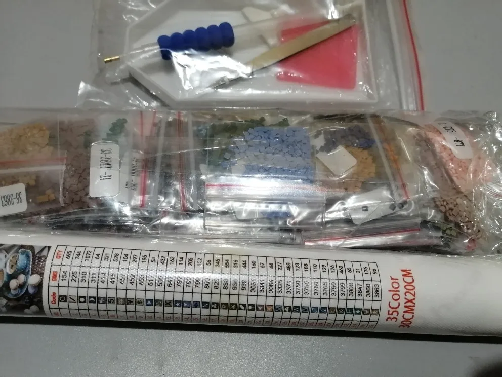 Все пришло что заказывала, все 8шт. Все в комплекте. Пинцет, ручка удобная с мягкой насадкой, чашечка для стразов, две насадки на ручку, стразы квадратные я заказывала. Размеры все 30 на 20. Везде трубка мягкая, чтоб не заламывалась картина. Сама посылка была в пакете с пузырьками, а потом уже почтовый пакет. Ничего не поломалось. Спасибо.