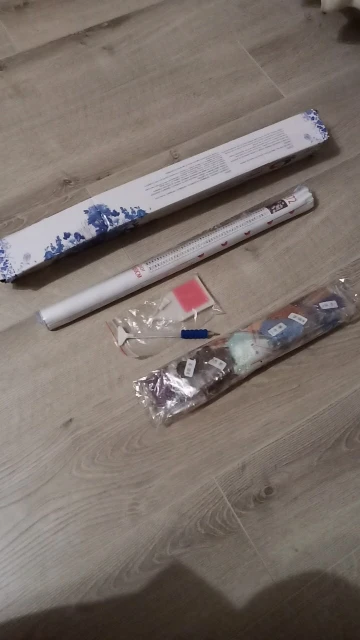 картина с алмазной мозаикой пришла то как предполагалось на подарок,но к продавцу это не имеет отношения.Внутри коробки всё было в наличии: ручка,пинцет,лоточек,клей и картина намотана на паралоновый рулон. Я выбирала картину конкретно в бирюзовом цвете, но оказалось, что в основном синий. Но, в целом покупкой довольна, продавец ответственный.Рекомендую