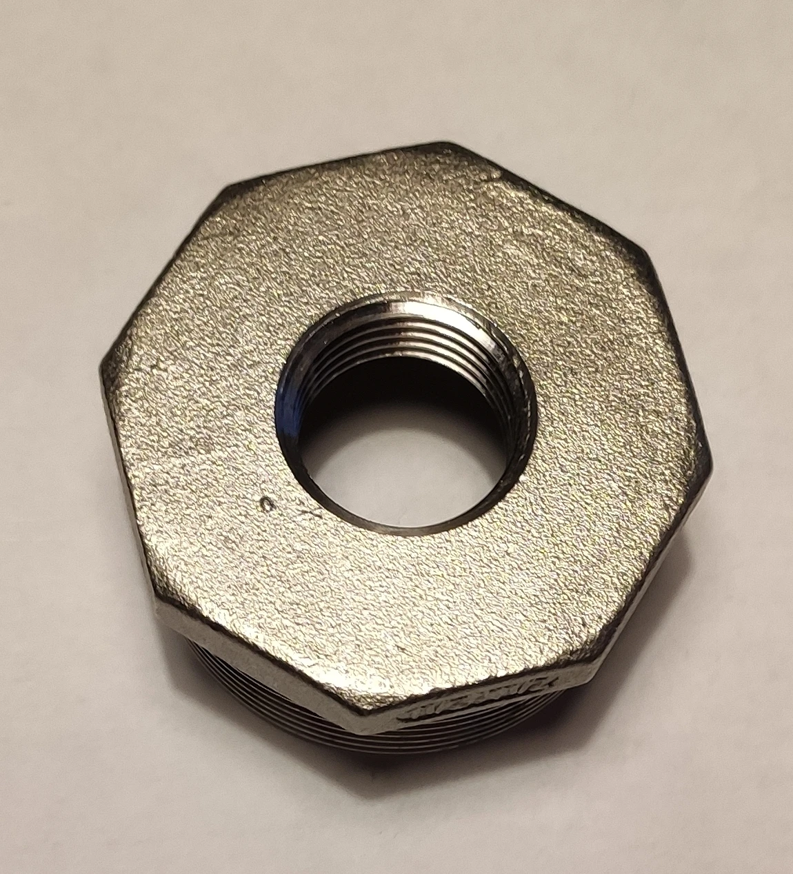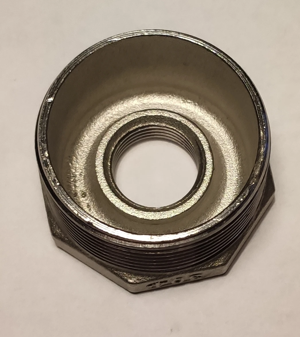 Втулка в целом нормальная, но поскольку защитная упаковка продавцом не применялась, одна из двух втулок, отправленных вместе, приехала с сильно поврежденным витком резьбы. Видно на фото. Внешние размеры и параметры резьбы соответствуют описанию. Не магнитится. На нержавейку похожа. Виток надфилем правился с трудом. Доставка платная.