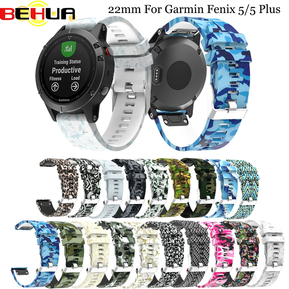 Ремешок быстросъемный для наручных часов Garmin Fenix 5 5 plus 6 6 Pro Forerunner 935 945, силиконовый спортивный браслет с принтом, 22 мм