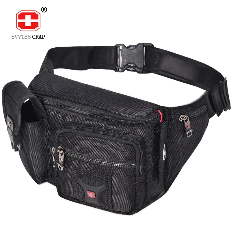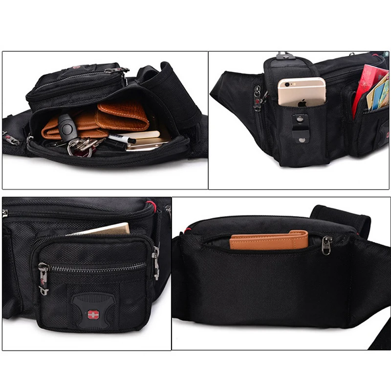 Поясная Сумка унисекс, многофункциональная, черная, с большим количеством карманов