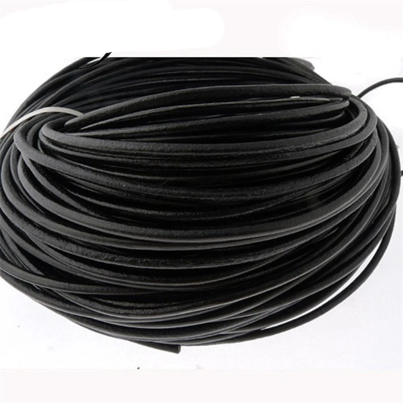 Шнур круглый из натуральной кожи для ювелирных изделий, нить для изготовления ювелирных изделий черного цвета, 10 м, 3 мм, изготовление ожерелий с подвесками