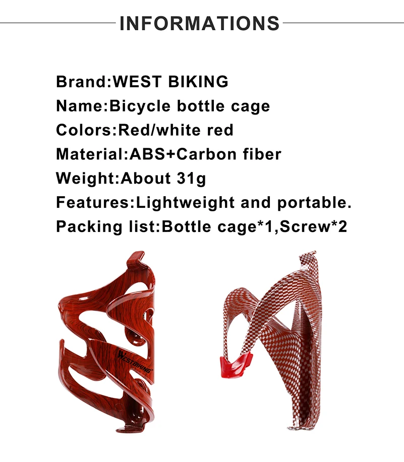 Наименование товараWEST BIKING велосипедный легкий карбоновый держатель для бутылки, винтажный коричневый держатель для бутылки для воды, MTB дорожный велосипедный держатель для бутылки