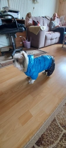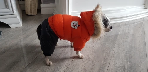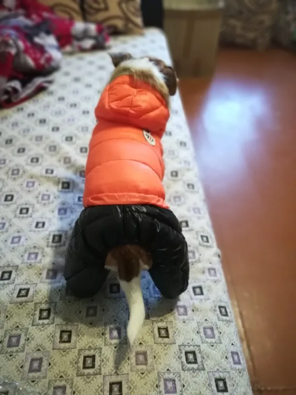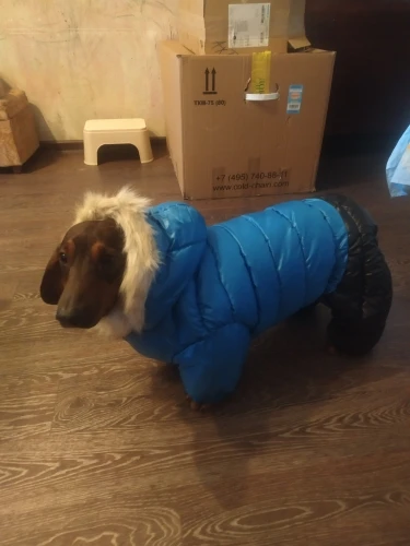 Очень классный дутый зимний комбинезон для собак. Для нашей джекрасселтерьера 2,5 года подошёл идеально. Оделся легко, нигде не давит. Мягкий, очень тёплый. Кнопки крепкие, качественные. Измеряла сантиметром размеры и подбирала по таблице, все совпало.