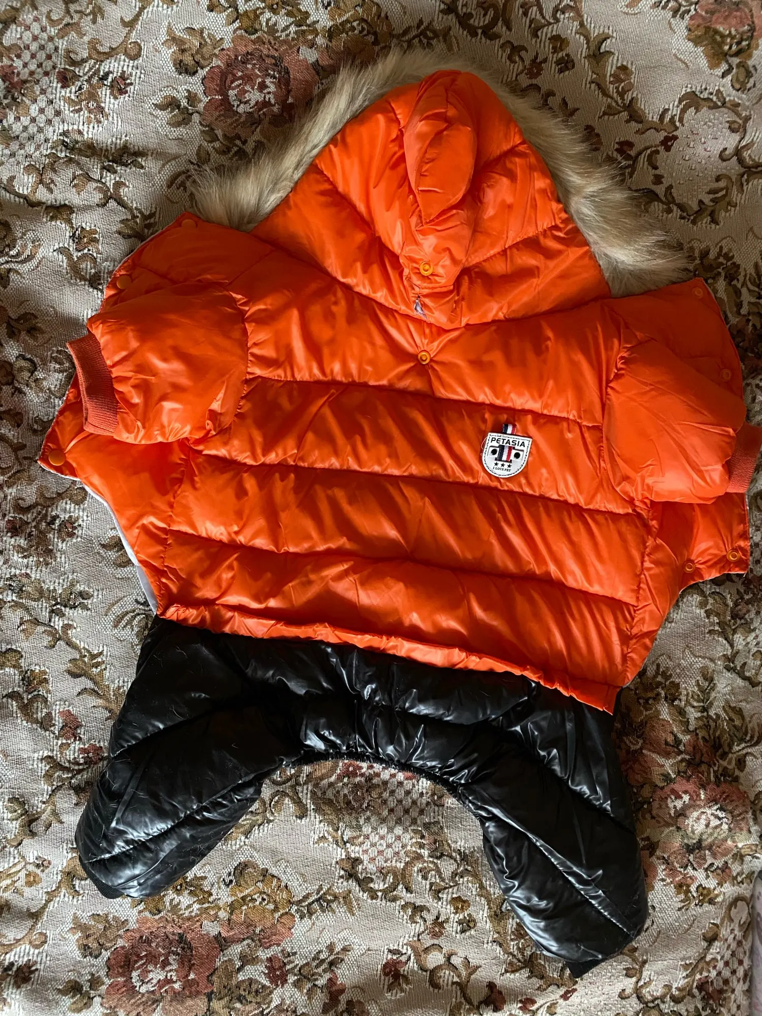 отличный костюм. все, как на картине, и цвет, и мех. теплый, как раз для нашей суровой Сибирской зимы. на задние лапки моего чихуахуа длина большая, но ничего, он у нас коротколапый и поэтому всегда имеется данная проблема. ближе к зиме укорочу и все. я довольна. получила быстро, стоит своих денег. в нашем городе такие супер-дорогие.
