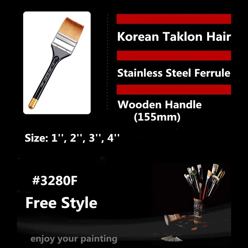 Кисть ArtSecret 3280F, многофункциональная Акварельная, акриловая художественная роспись, Корея, импорт синтетического ворса, латунный наконечник, деревянная ручка