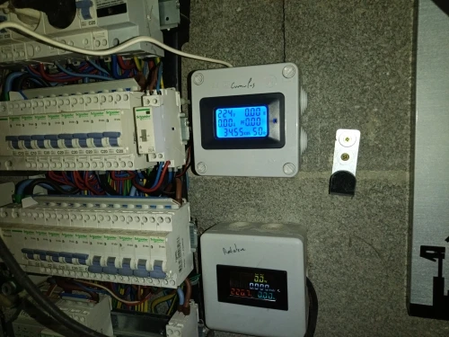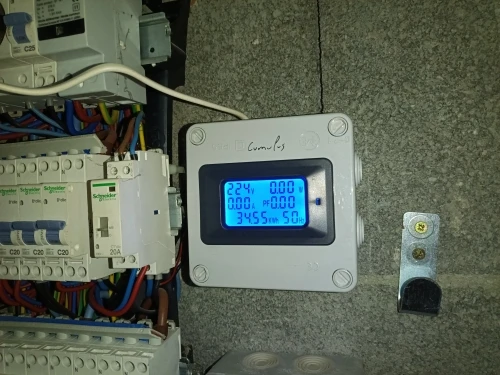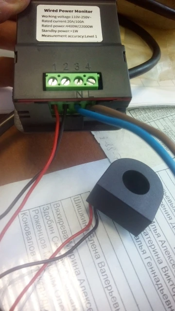Все работает. Сначала не работал счётчик кВт*ч и не показывал мощность (только напругу, ток, косинус фи и частоту). Перевернул трансформатор тока согласно стрелке и все заработало