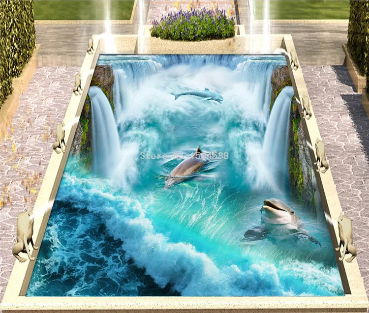 ПВХ самоклеящиеся водонепроницаемые 3D напольные плитки, Настенные обои, наклейка, водопады, дельфины, фрески, торговый центр, уличные напольные обои для ванной