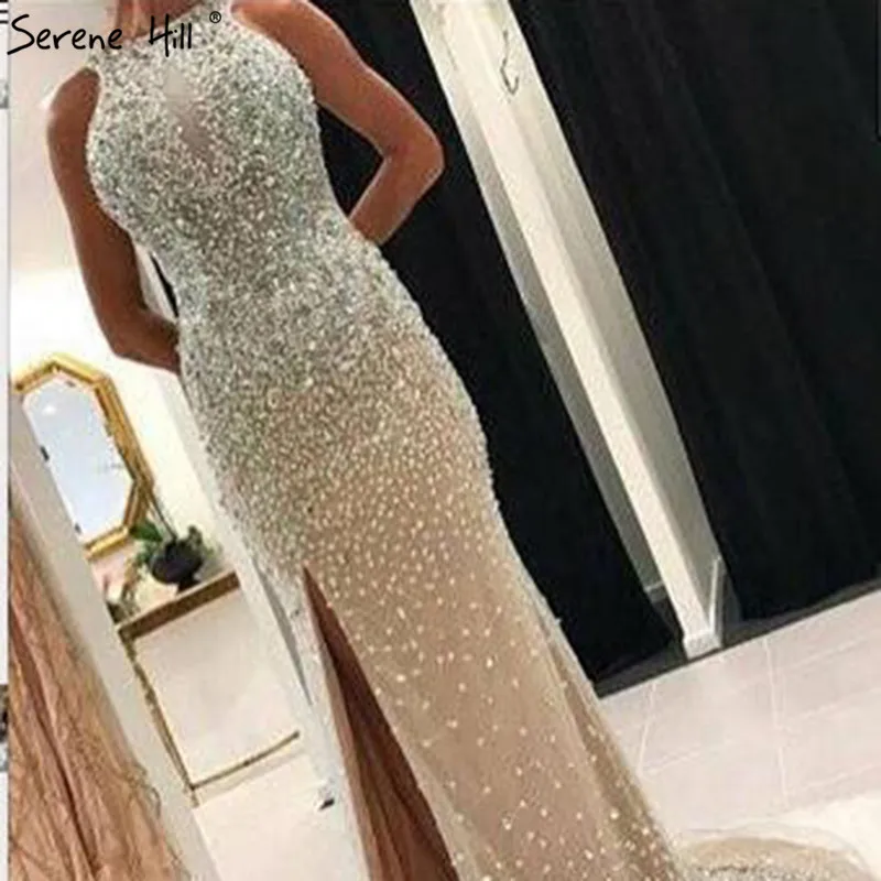 Серебряные Дубай без рукавов сексуальные вечерние платья 2021 бисер...