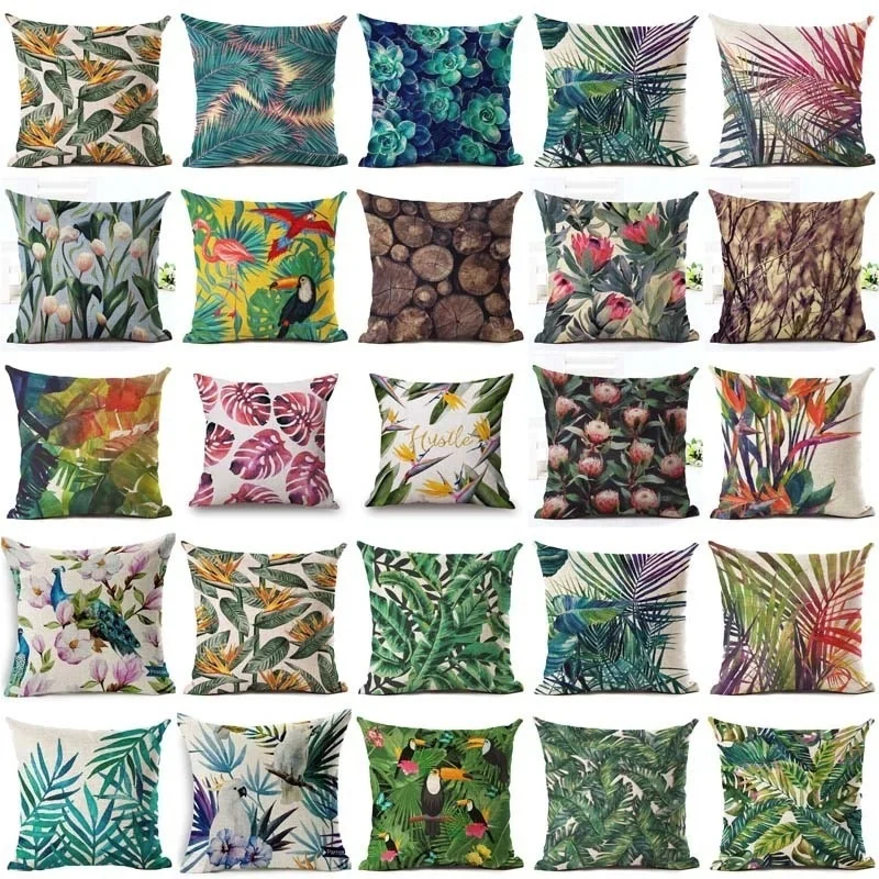 Тропическая наволочка с принтом птиц, льняная наволочка для диванной подушки, декоративная наволочка для подушки, 45x45 см