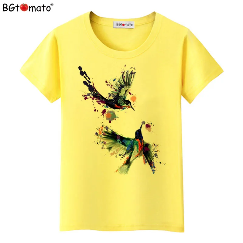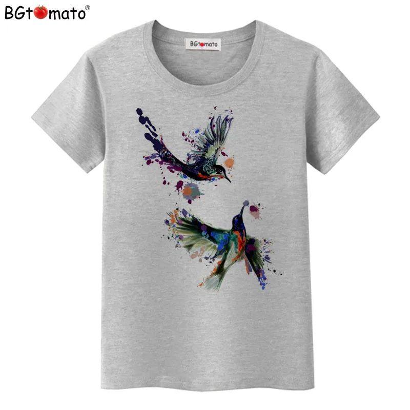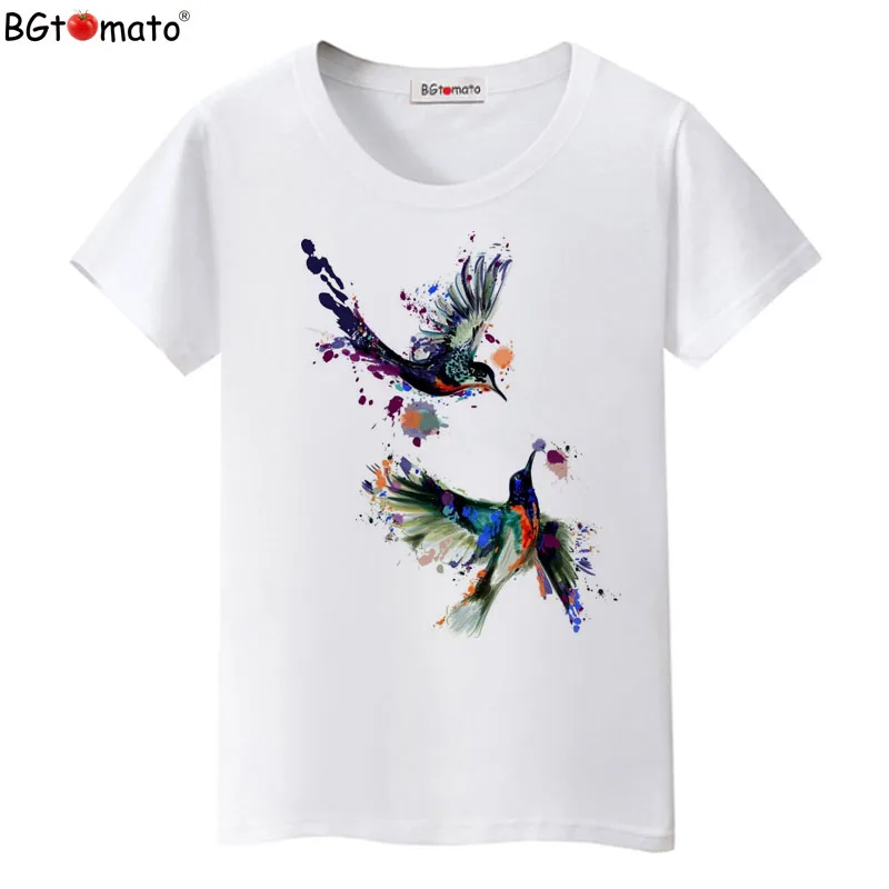 Лидер продаж, летняя футболка BGtomato с красивыми птицами, женские топы, футболки, новая футболка, женская повседневная одежда с коротким рукавом, модная футболка
