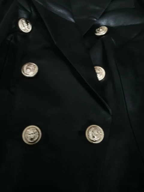 Женский блейзер, двубортный блейзер из искусственной кожи, с металлическими пуговицами в виде льва, Осень-зима 2021