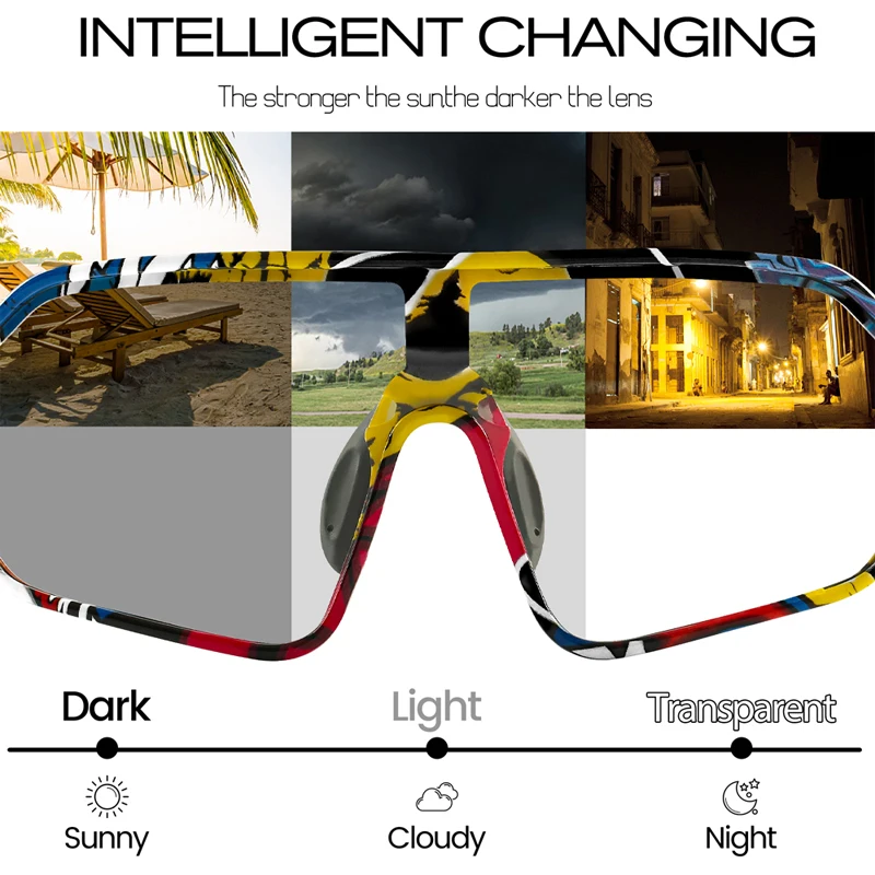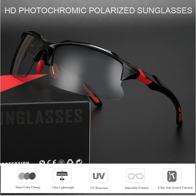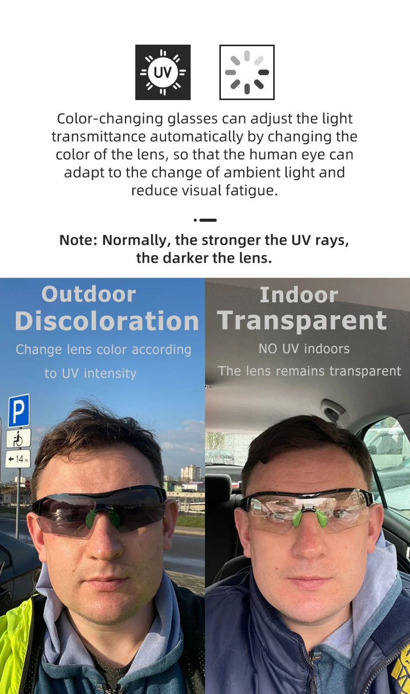 Хорошие очки. Сначала думал что китайцы обманули и линзы просто белые. Но потом вышел на улицу и под прямым солнечным светом они действительно постепенно потемнели. Отличный вариант для тех кто занимается спортом во время заката или рассвета.