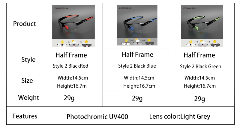 Идеально подходит для использования в различных велосипедах с точки зрения времени. Быстро темнеет и обеспечивает уровень защиты от света. В темные часы становится прозрачным, что позволяет продолжать защищать ваши глаза от ветра и т. д., не влияя на видимость. Соотношение качество/цена очень выгодная, а также включает в себя хорошее оборудование аксессуары (ножны жесткий + мягкая оправа рецептурные линзы, ткань протирать линзы, Ремешок безопасности). Существуют бренды очков, выбитые (и дорогие), где фотохромные эффекты более очевидны и быстро, но так быстро quest'effetto никогда не может быть мгновенным, поэтому также не могут быть очки adoperati более дорогими, Е. G. Компенсировать резкие изменения яркости типичной педали в лесу, входы в галерея и т. Д. Поэтому я думаю, что эти Comaxsun являются альтернативой, безусловно пригодной, чтобы попробовать этот вид линз без ущерба для кошелька.