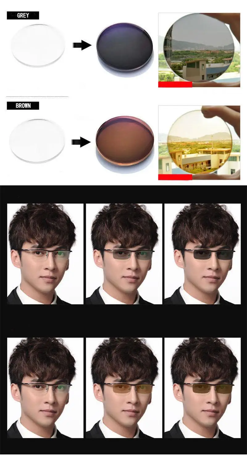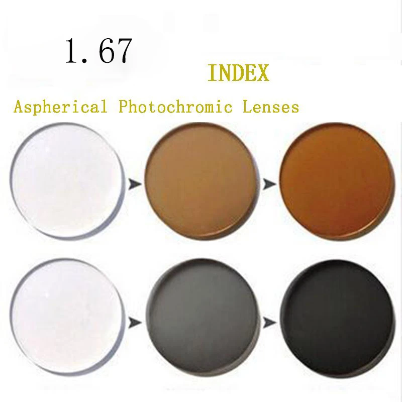 Высокое качество 1,67 индекс серый/коричневый фотохромные по рецепту Цветные глаза серые линзы oculos de grau opticos близорукость
