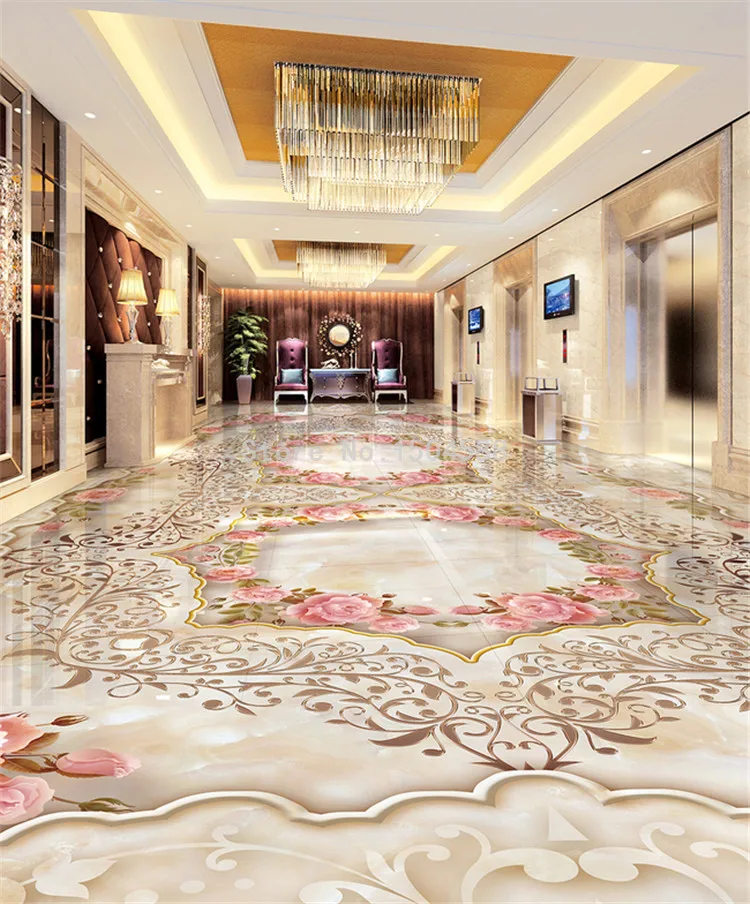 3D напольная плитка на заказ, обои с мраморными розовыми цветами, фотообои для гостиной, спальни, торговых центров, ПВХ, водонепроницаемые фрески, наклейки 3 D