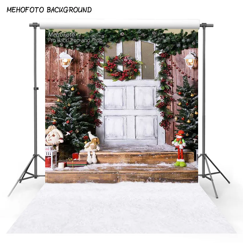 5X7ft Винтаж деревянная дверь виниловый Фотофон по индивидуальному заказу, Рождественская елка и Подарочная коробка фон для галереи для фотостудии