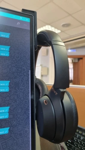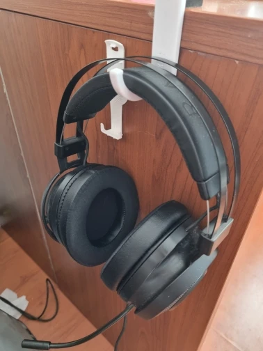 К сожалению, вещь, которая приклеила ее, была недостаточно, и на следующий день я обнаружил наушники в полу. После этого я просверил его к своему столу, и все в порядке. Так что фактическая поддержка наушников хорошая, но липкая вещь была недостаточно.