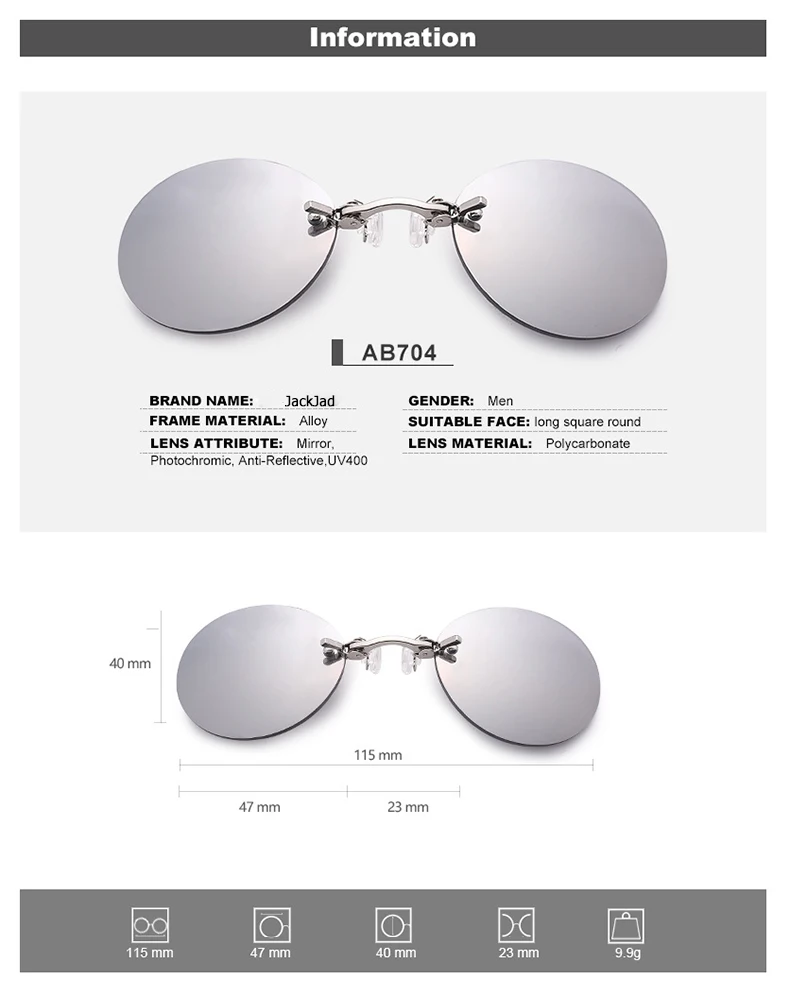 Очки солнцезащитные мужские круглые с клипсой для носа, UV400