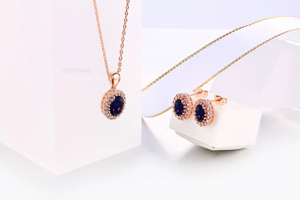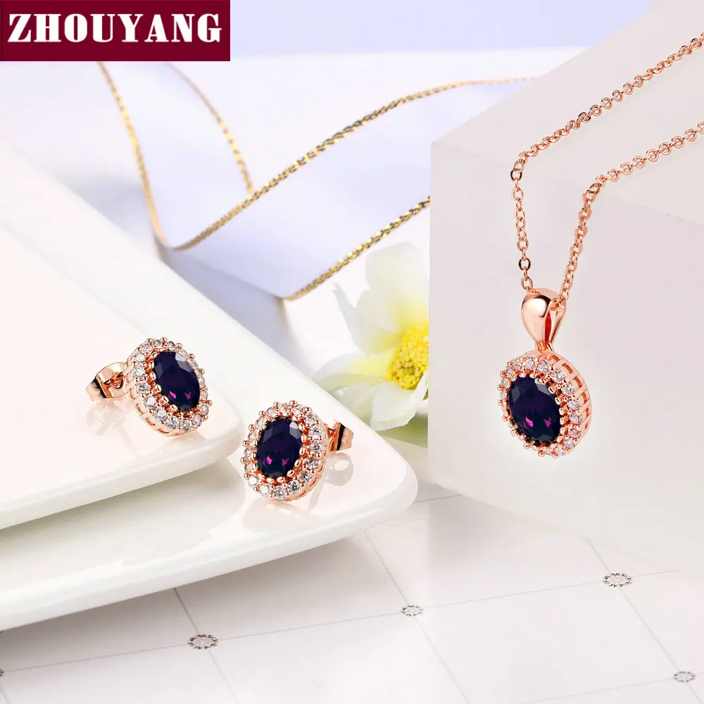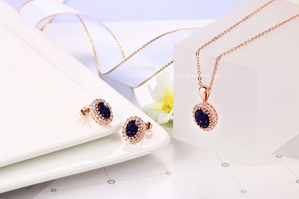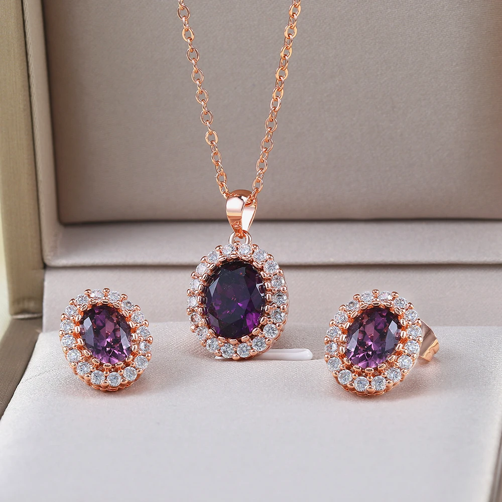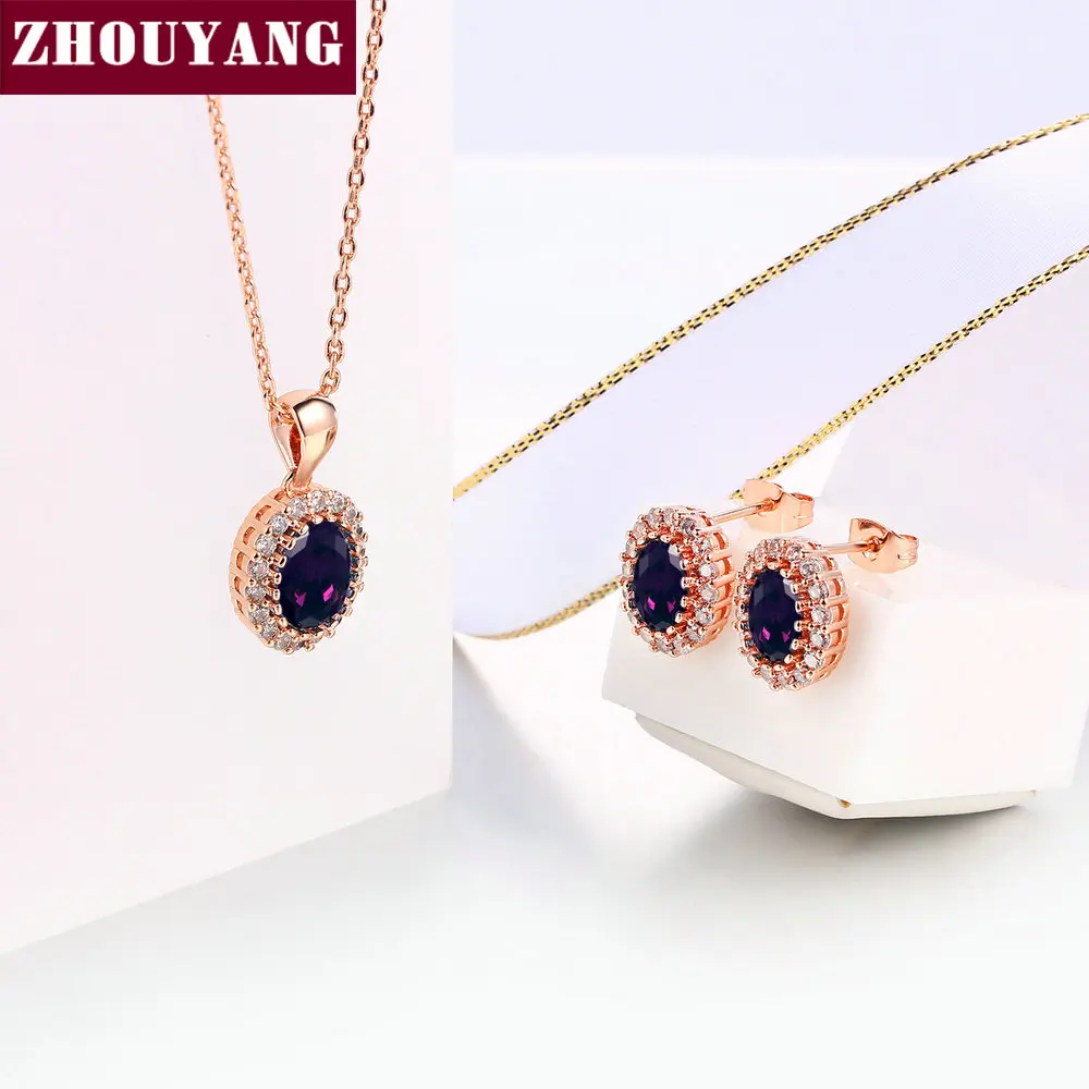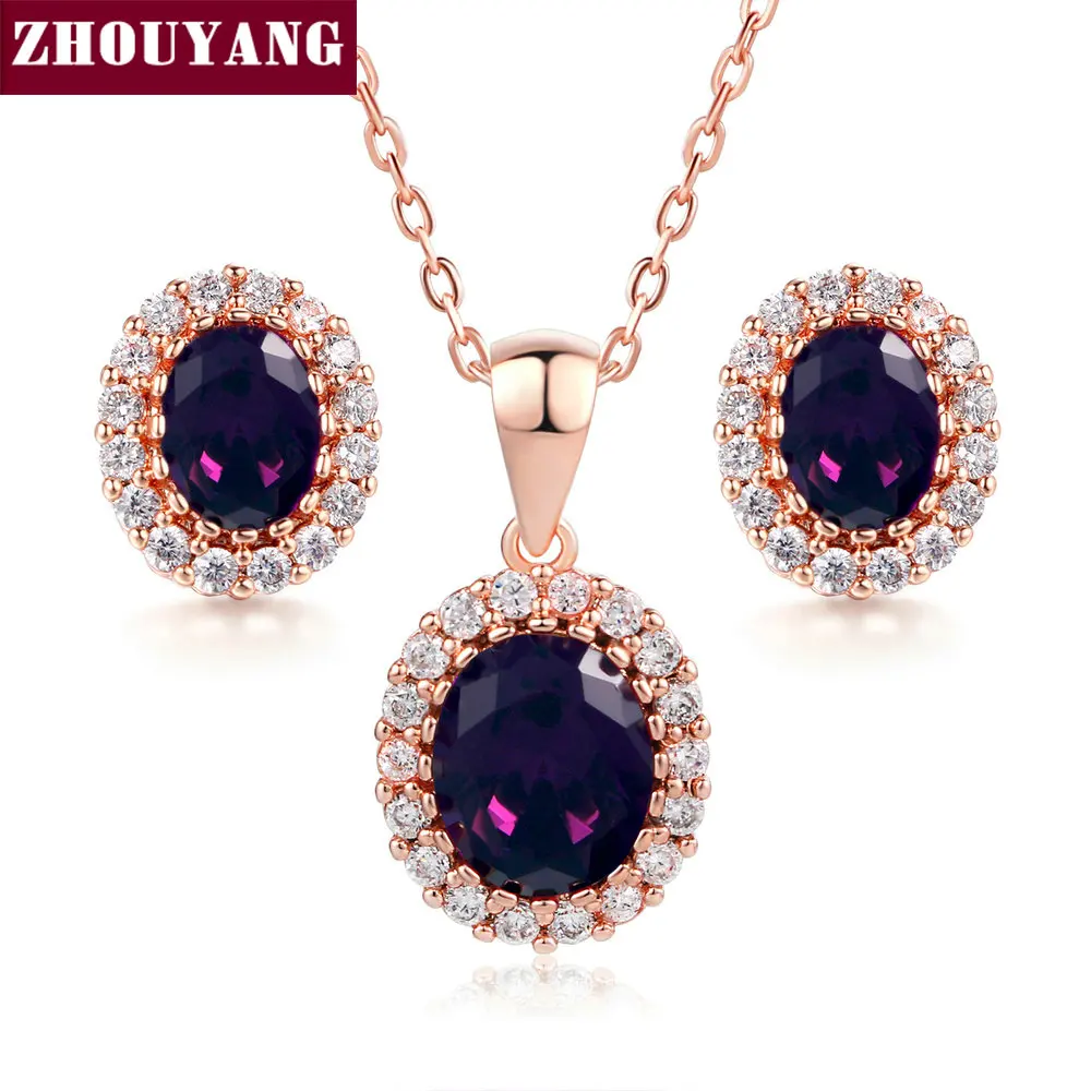 Классический роскошный фиолетовый кристалл цвет розового золота ювелирный набор высокого качества ZYS384