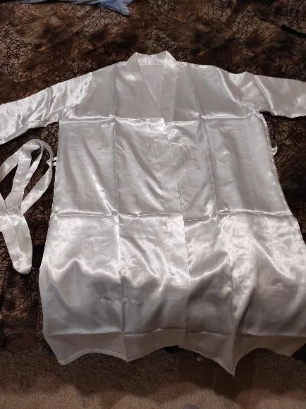 Очень крутой халат! Все аккуратно пошито, ткань не прозрачная, смотрится красиво. За такую цену просто находка! Доставка 2 недели! Спасибо большое продавцу!
