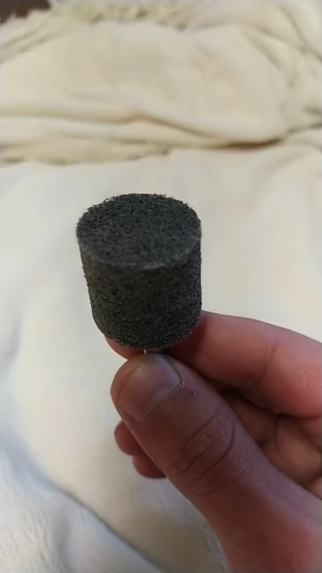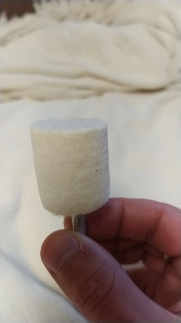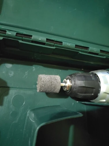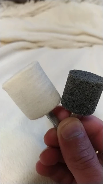 Любопытный абразив, очень лёгкий,соответствует, примерно,1000 шкурке. К сожалению ось вклеена чуть криво, бьёт