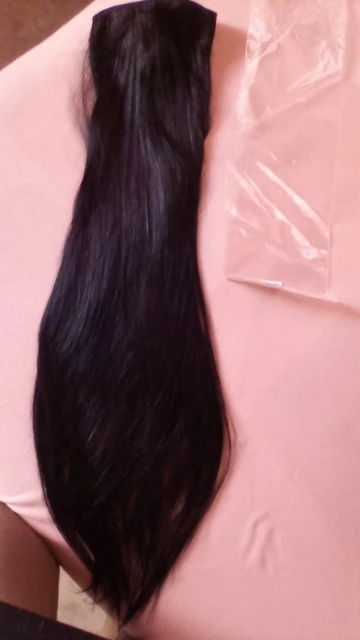 Я купила один пучок и добавила его в три пучка человеческих волос. Чтобы увидеть, как будет ждать. Это действительно хорошо, мы можем сказать разницу, хотя время идет. Не так сильно выглядит, насколько это поле. Выглядит как человеческие волосы, когда они мокрые. Краска и отбеливатель действительно хороши. Я бы сказал лучше, чем человеческие волосы