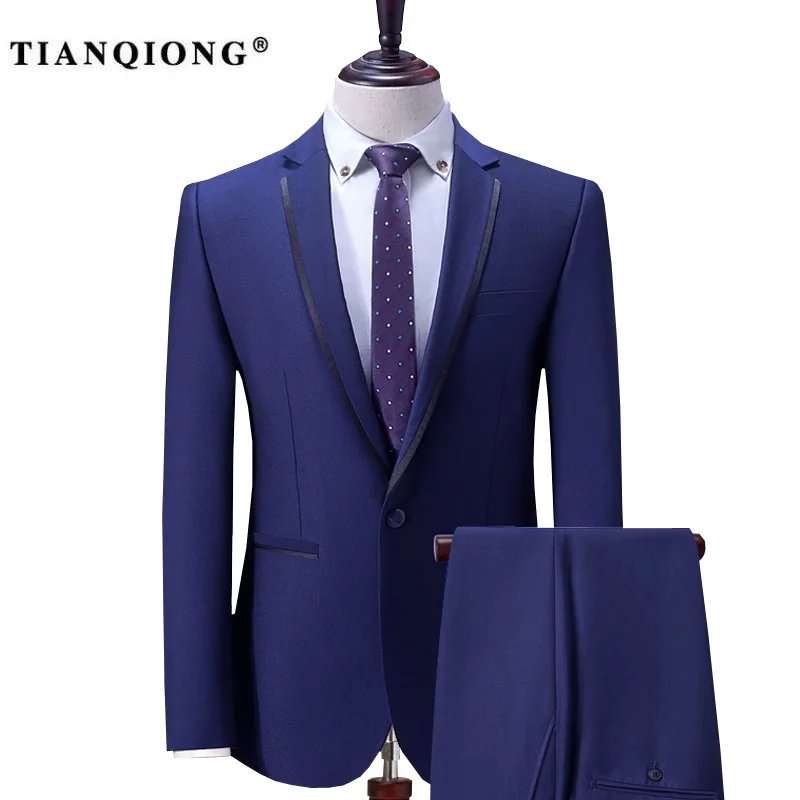 Синие деловые мужские костюмы TIAN QIONG на заказ, Классические свадебные костюмы на заказ для мужчин, индивидуальный костюм жениха, смокинги для мужчин