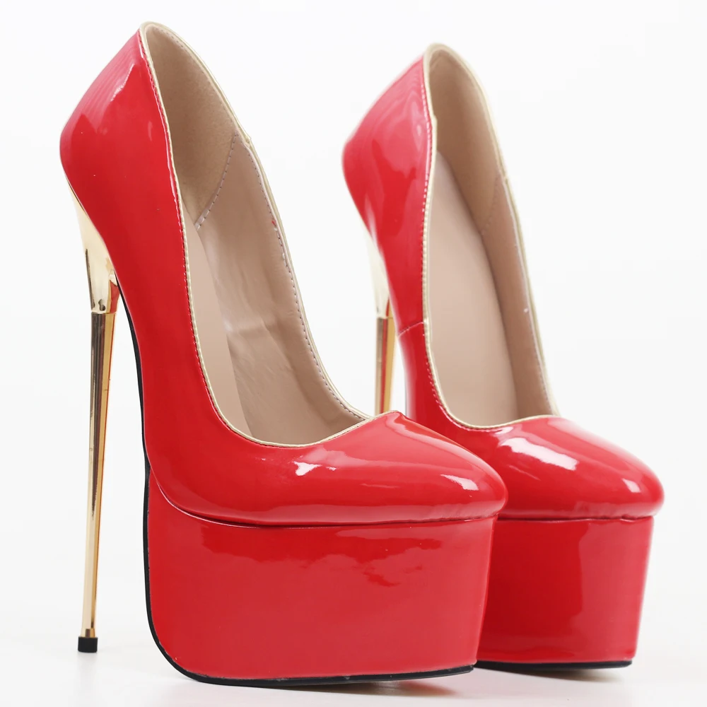 Туфли-лодочки jialuowei женские на платформе, высокий каблук 22 см, модные туфли из искусственной кожи на золотом и металлическом каблуке, без застежек, обувь для танцев и ночных клубов